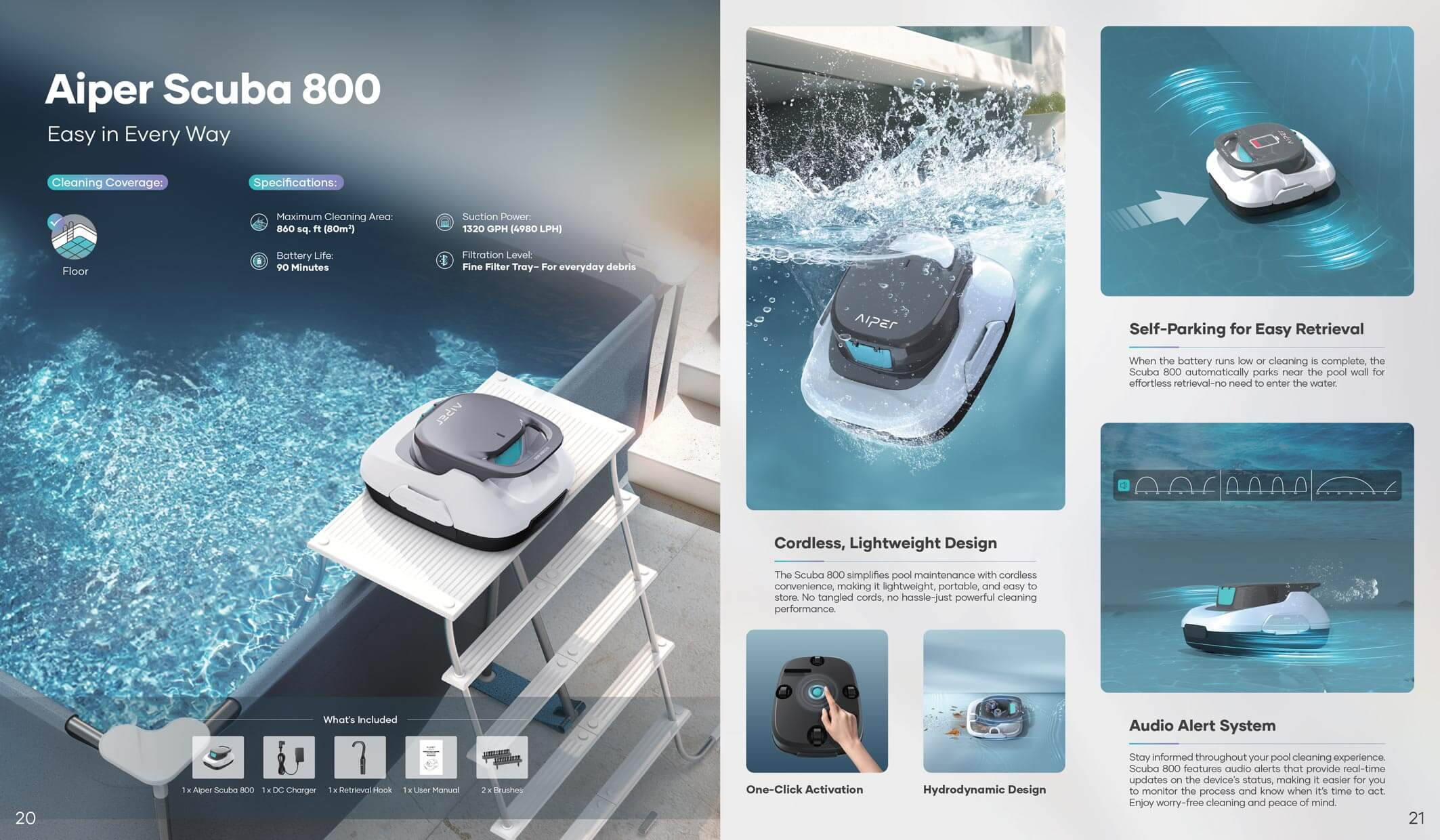 Discover the Scuba L1, Scuba 800, Aiper’s solution for pristine pool floors. Designed with the user in mind, it promises e ortless cleaning that ensures every inch is spotless. With a sophisticated, lightweight design and seamless operation, enjoy a worry-free experience that redefines convenience. Elevate your pool maintenance to a new level of excellence!