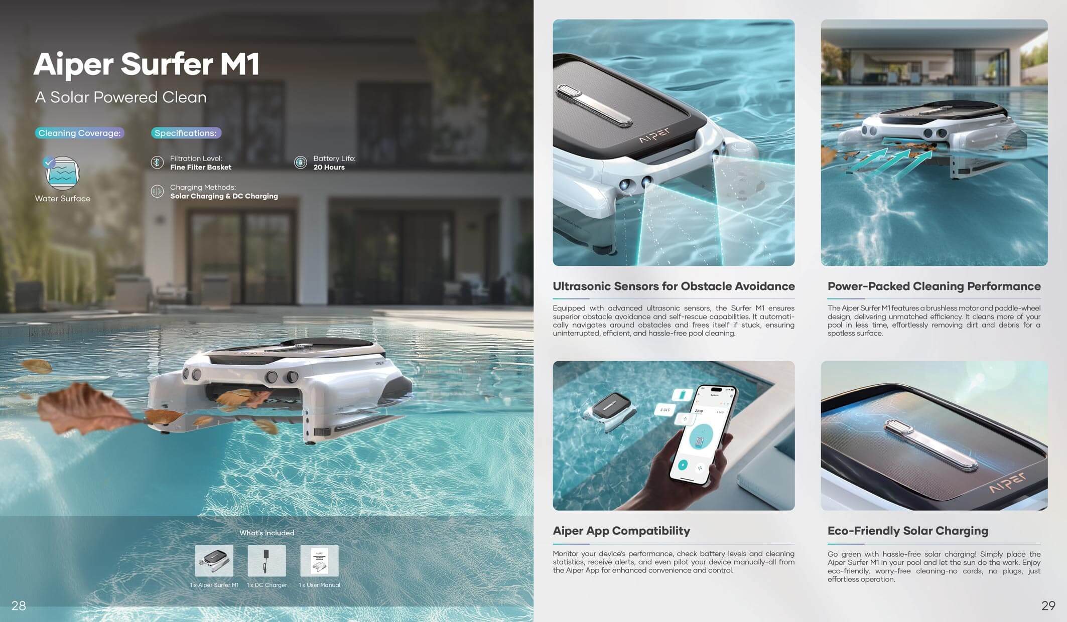 Effortless Cleaning with Solar-Powered Efficiency! Meet the Aiper Surfer Series — the ultimate pool skimmer. With reliable solar-powered, cleaning, the Surfer Series captures everything from large debris to fine particles, ensuring uninterrupted, smooth cleaning. Durable, eco-friendly, and built to last. Let the Aiper Surfer Series handle the hard work, so you can relax and enjoy a perfectly clean pool.