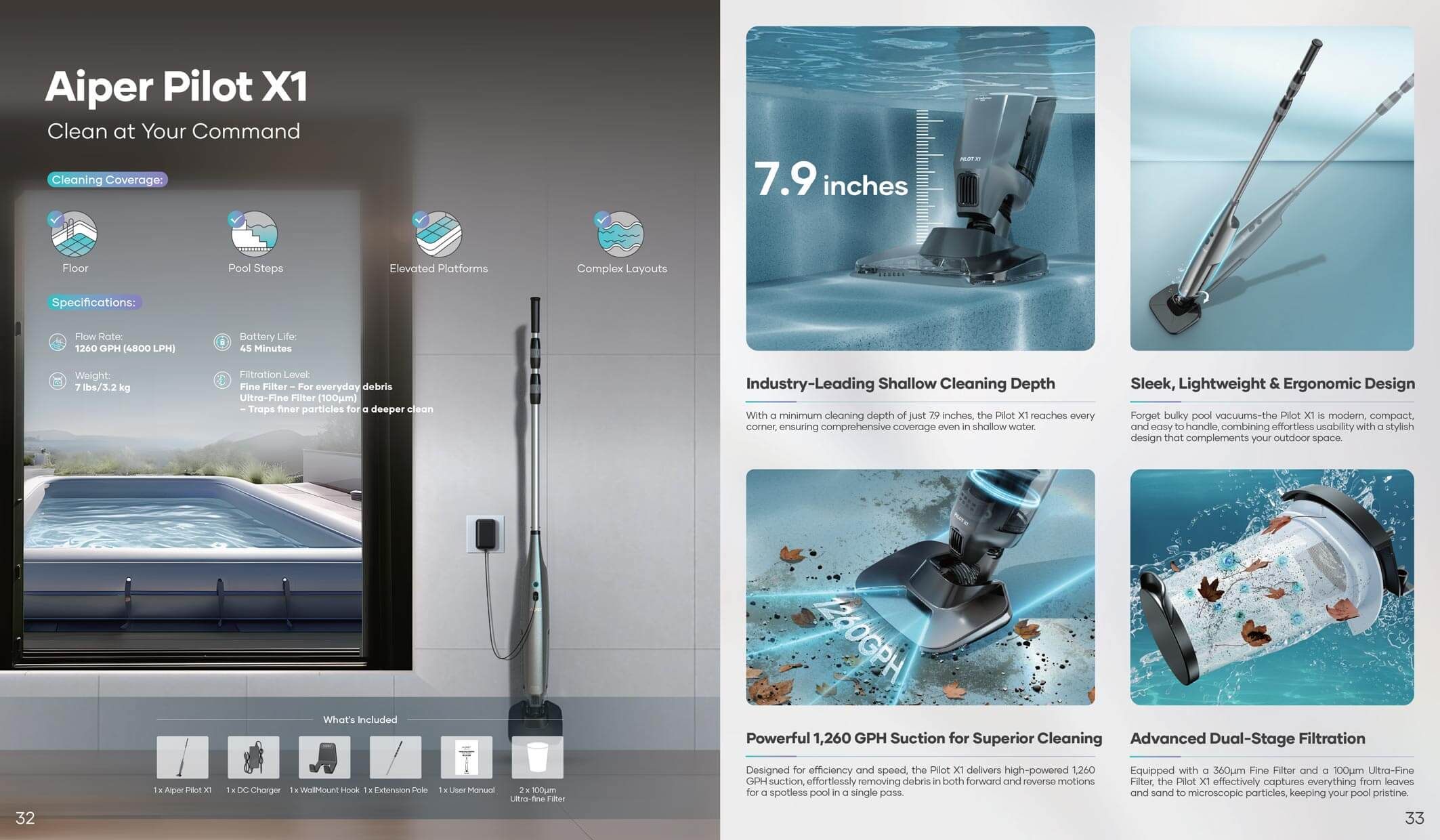 Discover the Aiper Pilot X1, engineered for e ortless precision every time! The Pilot X1 guarantees no clogs, delivering uninterrupted cleaning power. Enjoy a pristine pool e ortlessly, allowing you to relax and savor your sparkling oasis without the hassle of maintenance. Elevate your pool experience today!