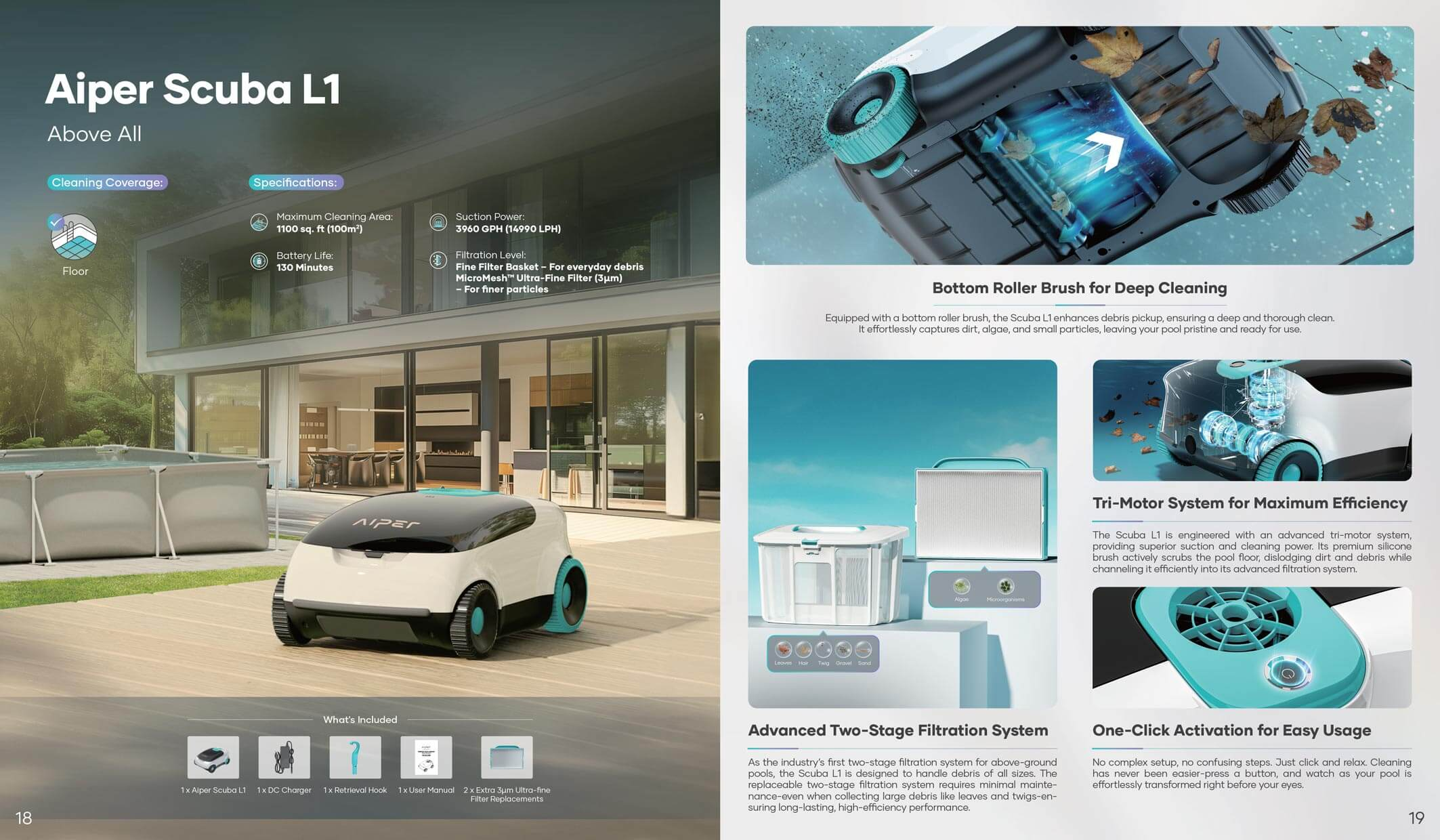 Engineered for superior e ciency, Aiper pool cleaners transform pool maintenance into a hassle-free experience, allowing you to bask in the beauty of your pristine oasis.